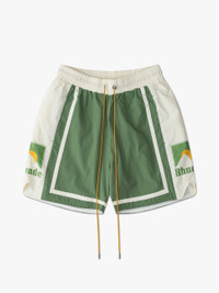Premium track short with Rhude Moonlight Logo printed on each outer leg. Twin side pockets, extended drawstrings in our signature mustard tone. SIZING DRY CLEAN ONLY WE RECOMMEND TAKING YOUR STANDARD SIZE