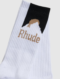 Ribbed knit socks. Jacquard logos on the side panels. Calf-length. - Cotton and elastane SKU: RHSS24SO02616148