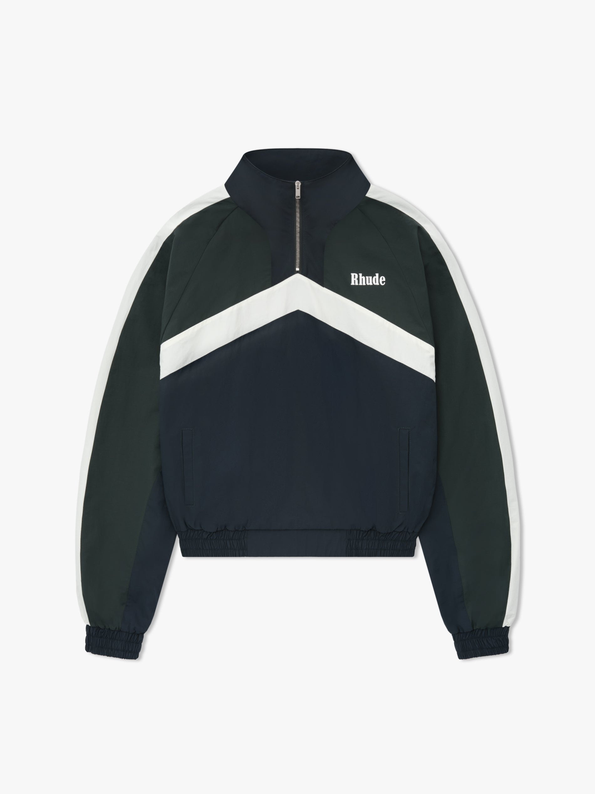 Crafted with high-quality flyweight poly material, this jacket boasts a unique dual-panel chevron design and includes a Rhude Pill zipper for a secure and stylish fit. 100% POLY Dry clean only. Standard fit. We recommend taking your standard size.