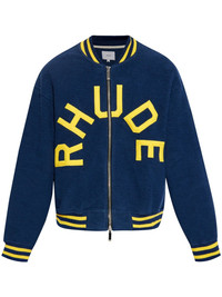 logo-applique terry varsity jacket Highlights - Navy blue - Terry cotton - Applique logo - Ribbed band collar - Front zip fastening - Elasticated cuffs Made in United States Composition Outer: Cotton 100% Trims: Polyester 95%, Spandex/Elastane 5% Lining: Lyocell 100% Washing instructions Read Manufacturer Guidelines