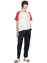 Padded twill slip-on sandals in off-white. · Open toe · Logo printed at padded footbed · Stacked leather sole with rubber injection Supplier color: Cream/Black Upper: textile. Sole: leather, rubber. Made in Italy 241923M234002