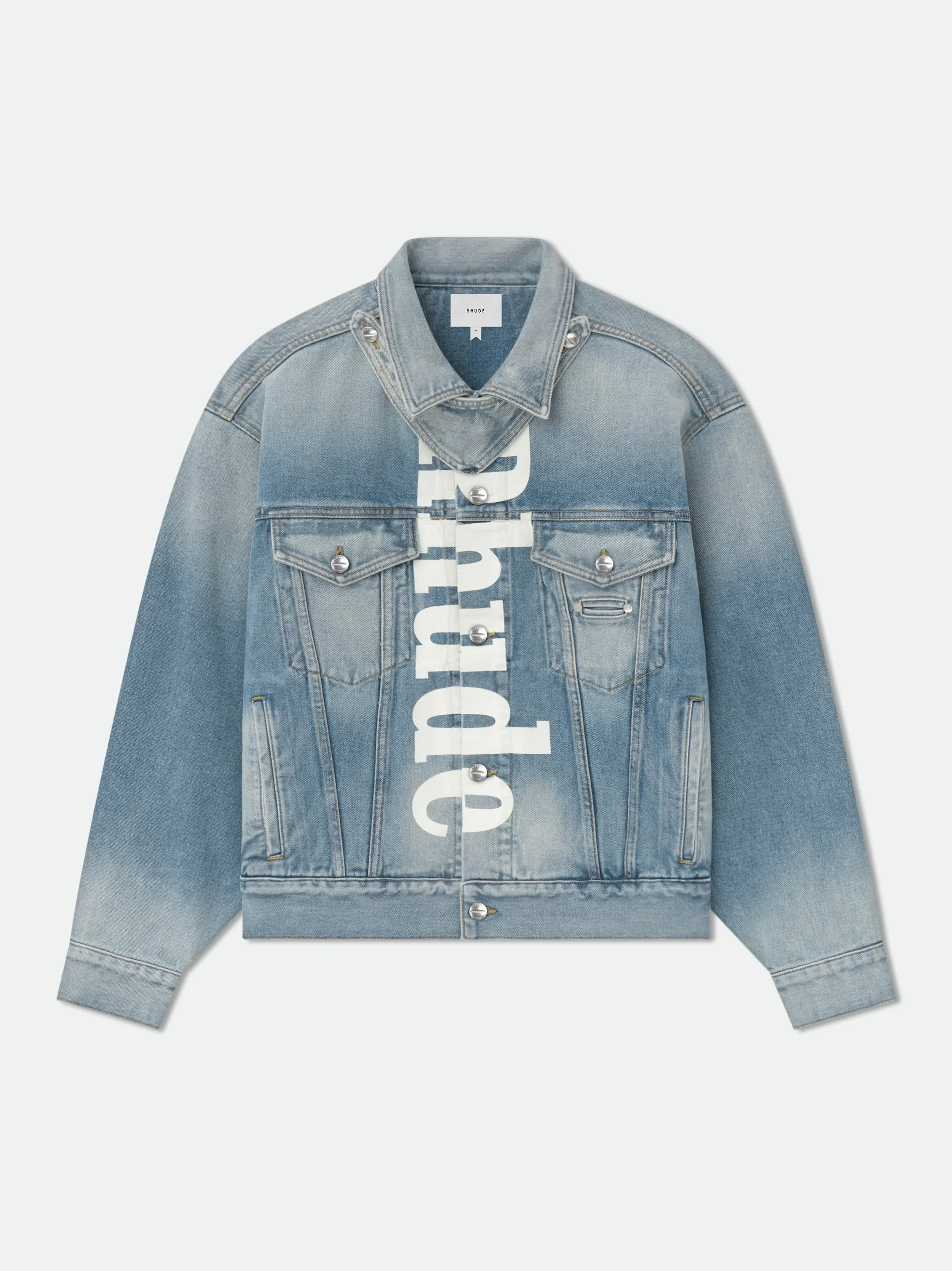 Expertly crafted with premium materials, this denim trucker jacket features RHUDE logo printed on front, a removable neck strap, twin pockets, and side pockets at the front. Custom Rhude button closures add unique style to this handcrafted piece, made in Los Angeles. Rhude Website Exclusive Denim Wash 100% COTTON DENIM