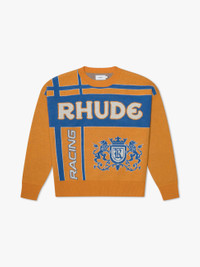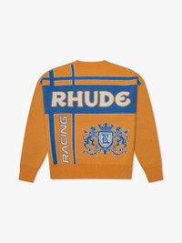 Premium Wool/Cashmere Blend Crewneck Sweater. Featuring "Rhude Racing" design on front and back, with rib-knit collar, cuffs, and hem. Custom fit with drop shoulder sleeves and pull over styling. SIZING STANDARD FITWE RECOMMEND TAKING YOUR STANDARD SIZE.