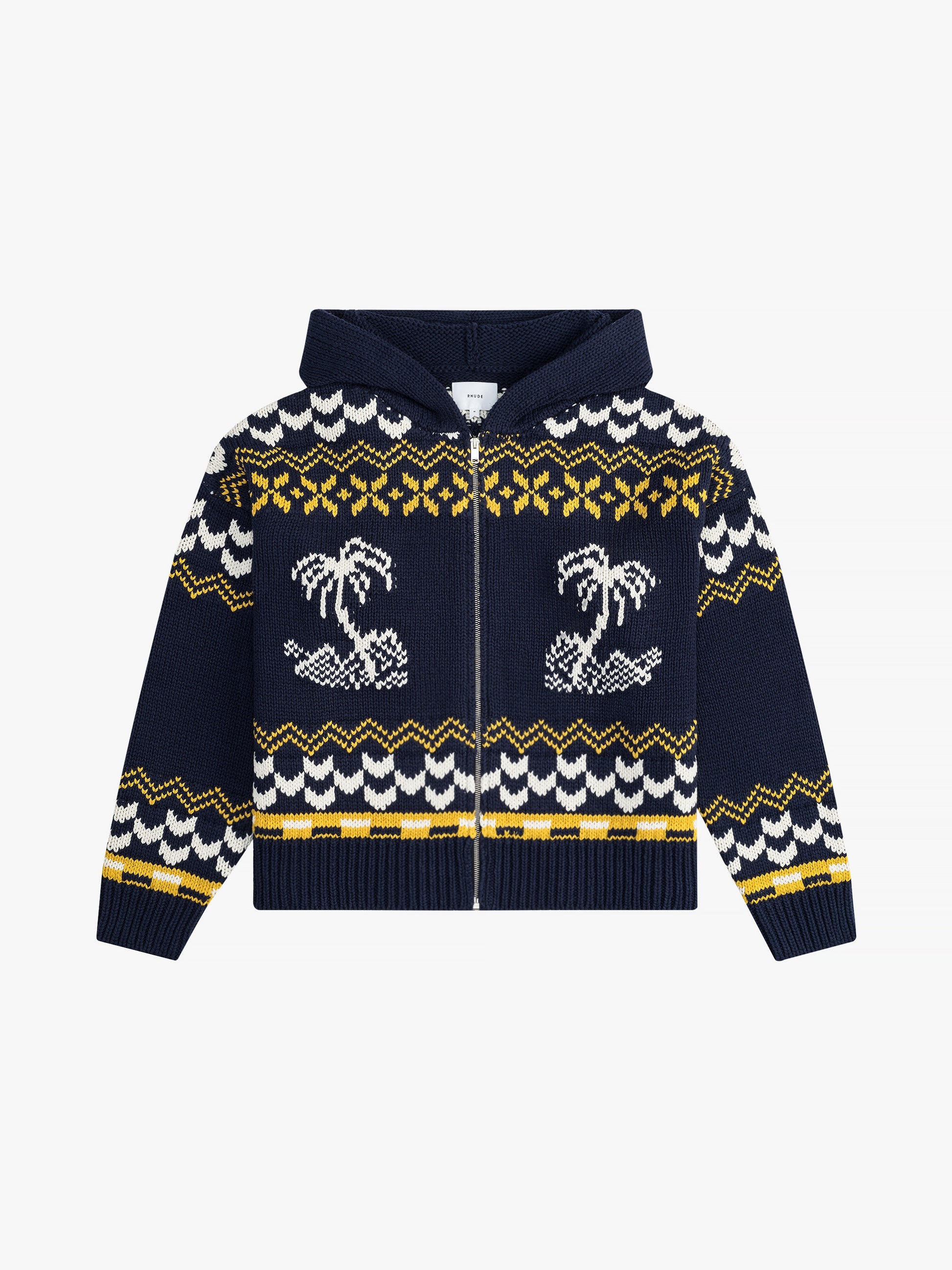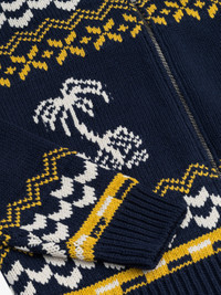 Handcrafted from a recycled blend of premium cotton and cashmere, this Full-Zip Sweater showcases a custom fit, complemented by drop shoulder sleeves, rib-knit cuffs and hem. Features intricate embroidery throughout. 95% COTTON 5%CASHMERE Dry clean only. Standard fit - We recommend taking your standard size.