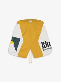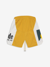 PREMIUM PANEL COTTON/NYLON BLEND SHORT WITH LOGOS PLACED ON EACH SIDE PANEL, ALONG WITH TWO SIDE POCKETS. EXTENDED DRAWSTRINGS IN OUR SIGNATURE MUSTARD TONE. CARE 40% COTTON 60% NYLON DRY CLEAN ONLY. SIZING STANDARD FIT. WE RECOMMEND TAKING YOUR STANDARD SIZE.