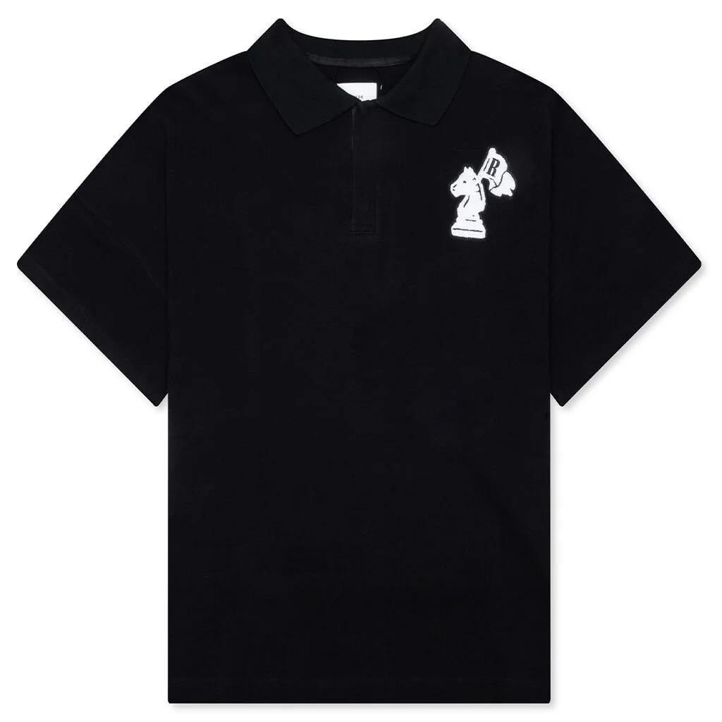 PIQUE BOXY POLO SHIRT - BLACK/WHITE