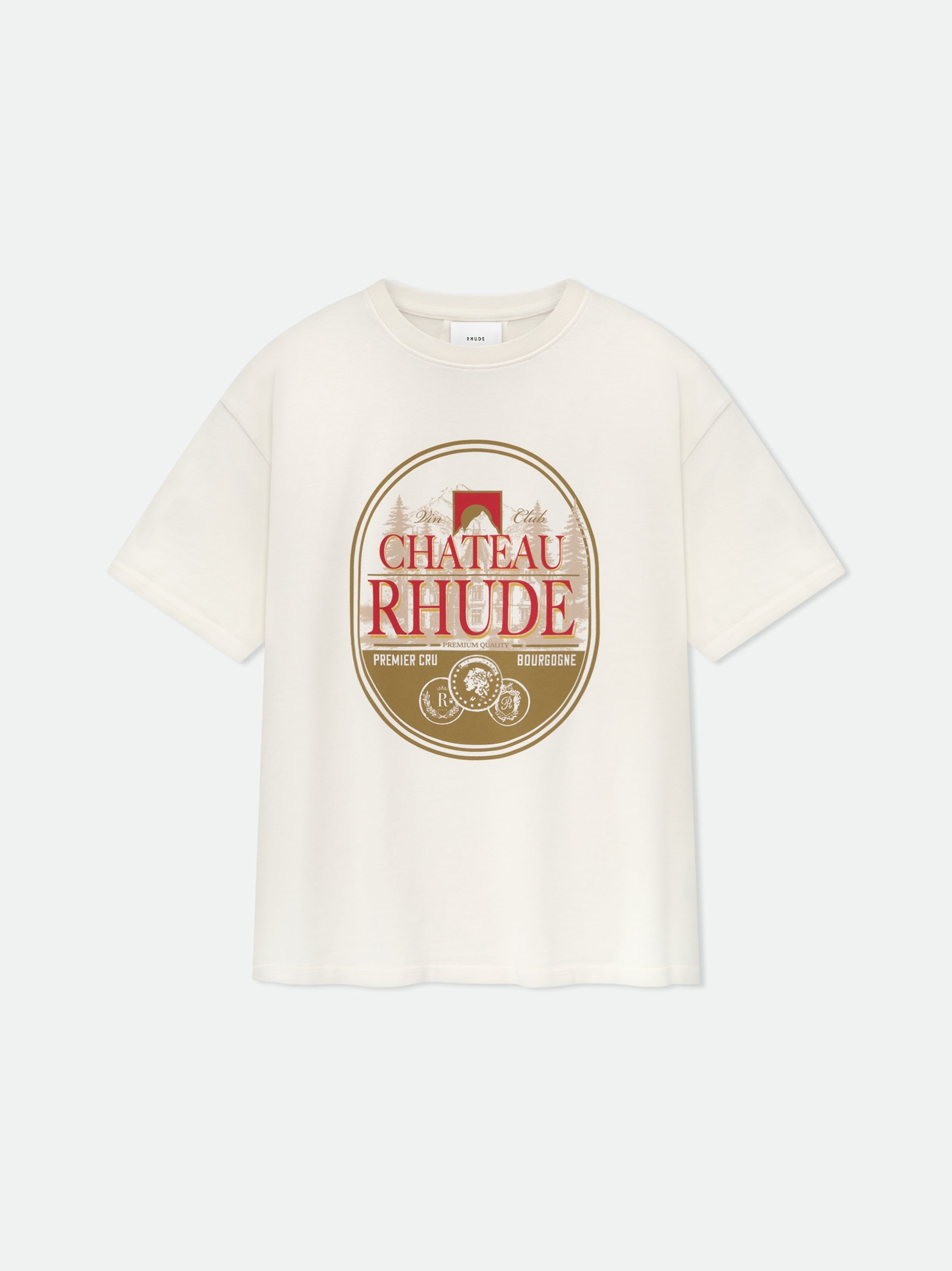 Custom-fit vintage wash cotton short sleeve tee-shirt with Chateau Rhude Premier Cru graphics printed at front, with a clean back. 100% COTTON WE RECOMMEND TAKING YOUR STANDARD SIZE