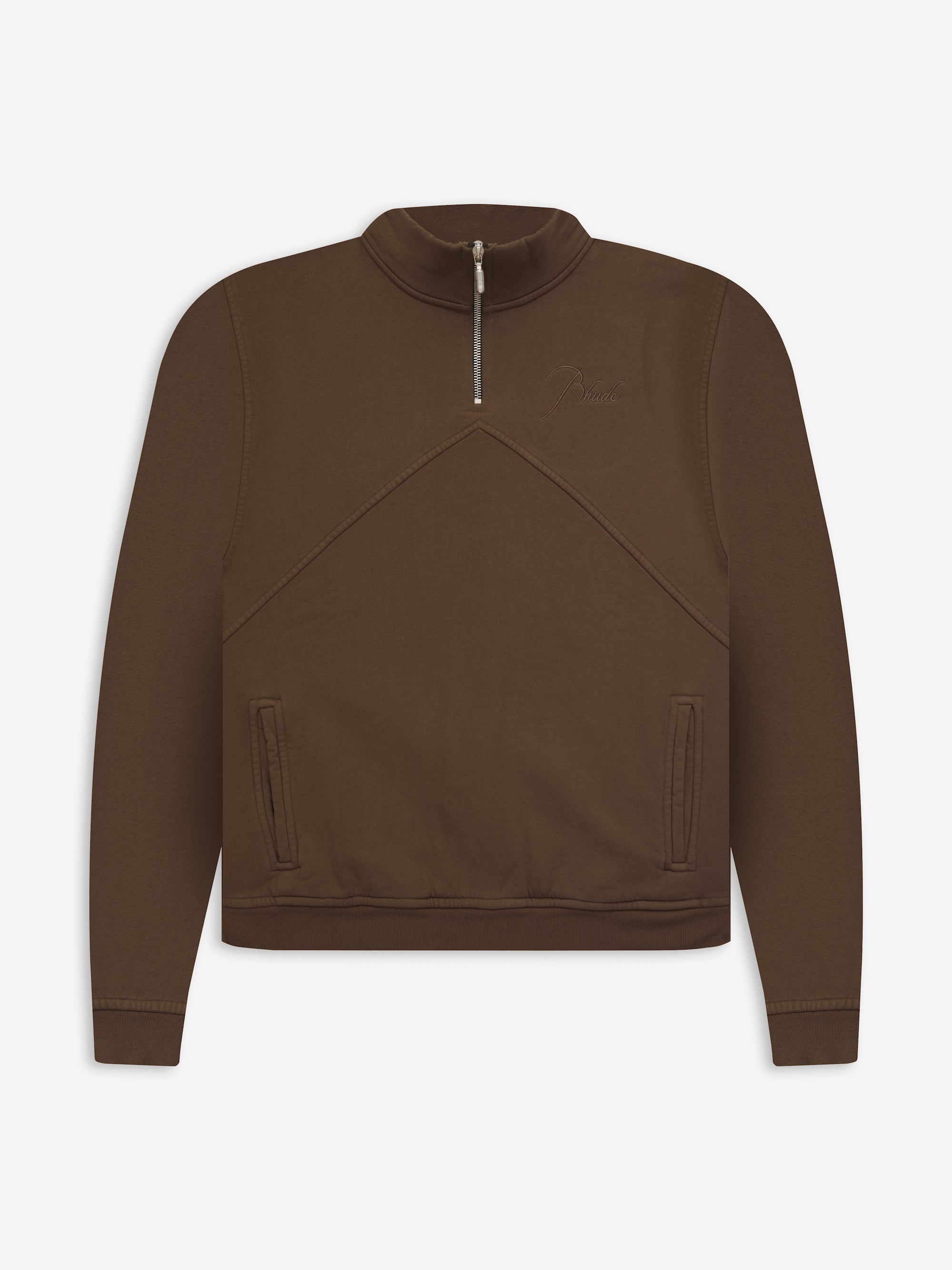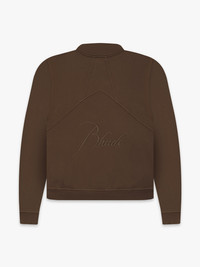 HEAVYWEIGHT QUARTER-ZIP JACKET WITH SIGNATURE RHUDE SCRIPT EMBROIDERED IN TONAL BROWN ON THE FRONT AND BACK. FEATURES CUSTOM RHUDE PILL HARDWARE AT FRONT QUARTER ZIP CLOSURE. CARE 100% FRENCH TERRY DRY CLEAN ONLY. STANDARD FIT. WE RECOMMEND TAKING YOUR STANDARD SIZE.