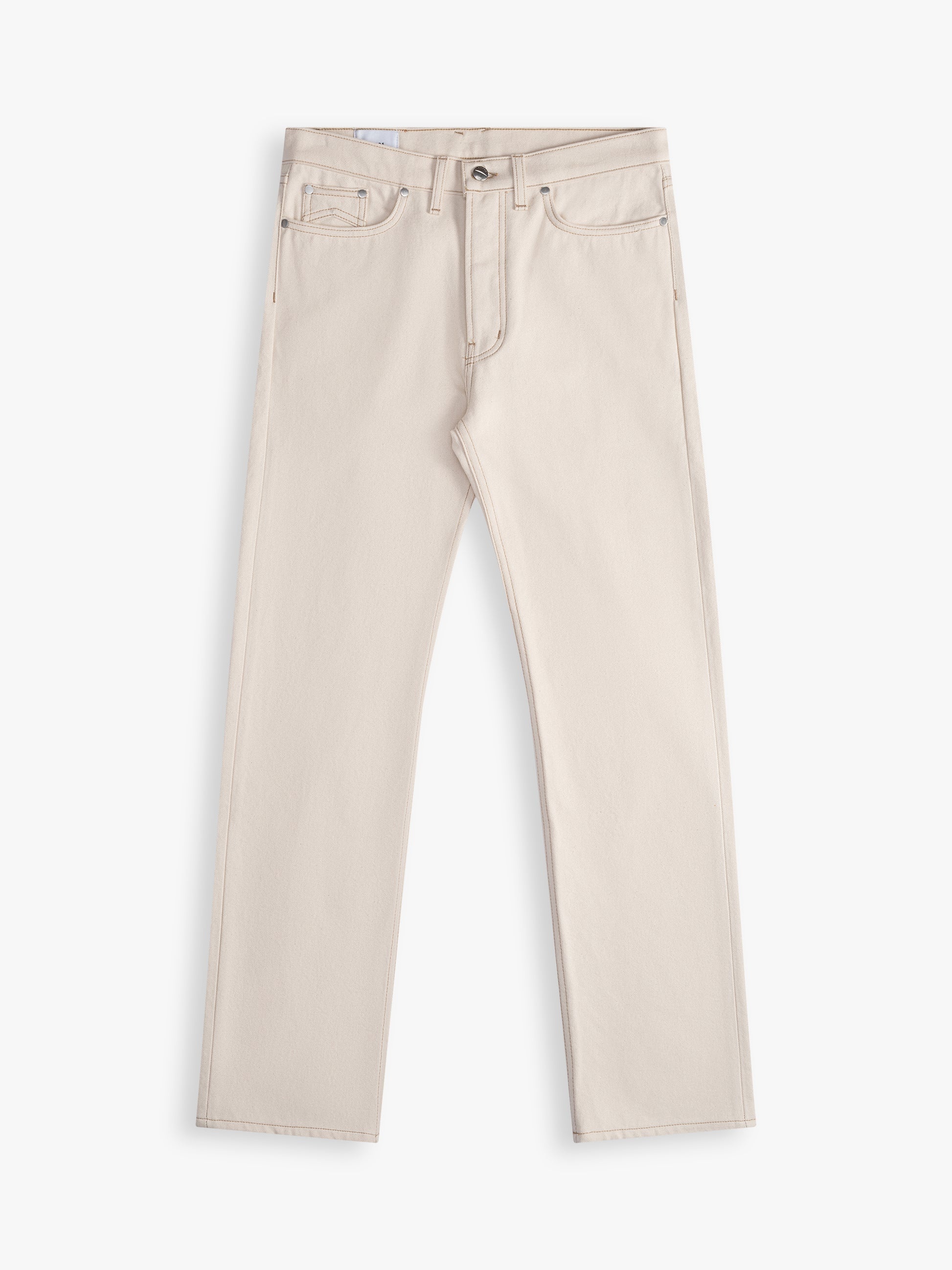 Classic Fit Stretch Cotton Denim Jeans. Replicates the perfect 90's denim silhouette with our premium materials and construction. Mid rise with signature seamlines, a premium leather back patch, and custom Rhude Closure button & hardware. CARE INSTRUCTIONS 98% COTTON, 2% ELASTANE DRY CLEAN ONLY WE RECOMMEND TAKING YOUR STANDARD SIZE