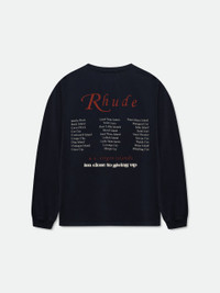 Custom-fit vintage wash cotton long sleeve tee-shirt with Rhude "USVI Regatta Team Tour" designs printed at front and back. 100% COTTON