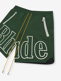 PREMIUM WASHED NYLON SHORT WITH WHITE LOGO PRINT ACROSS FRONT LEGS. TWIN ZIPPER POCKETS WITH MATCHING TONAL RHUDE PILL HARDWARE. EXTENDED DRAWSTRINGS IN OUR SIGNATURE MUSTARD TONE.E-COMMERCE EXCLUSIVE COLORWAY CARE 100% NYLON DRY CLEAN ONLY SIZING STANDARD FIT WE RECOMMEND TAKING YOUR STANDARD SIZE