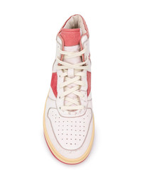high top rear logo sneakers white / red leather round toe front lace-up fastening contrasting panel detail flat rubber sole Made in Italy Composition Outer: Leather 100% Lining: Polyester 100% Sole: Rubber 100% SIZE & FIT Measurement HEEL 1.18 in(3 cm) HEIGHT 5.51 in(14 cm) Sole height 0.78 in(2 cm)