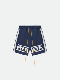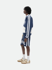 Crafted from premium washed cotton, shorts feature bold white logo detailing across the front legs, sporty stripes along the sides, and twin side pockets. Extended drawstrings in our signature mustard tone for an elevated, casual look. 100% COTTON