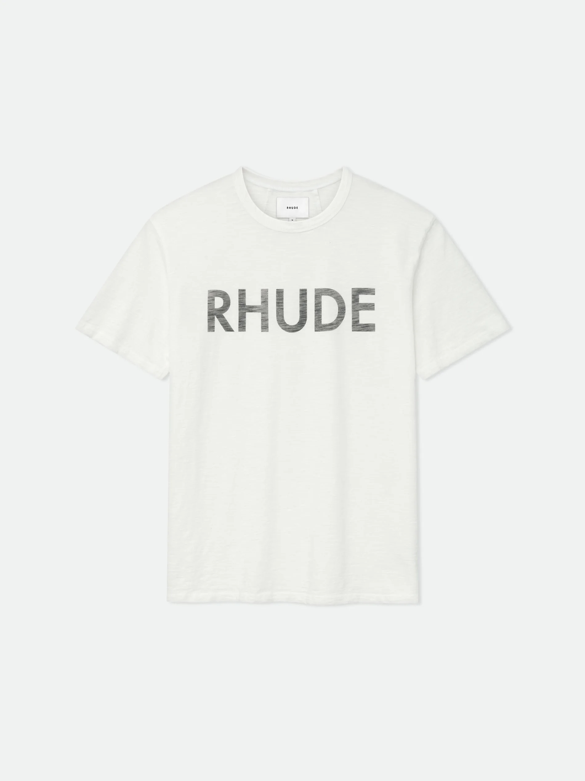 Custom-fit lightweight vintage wash cotton short sleeve tee-shirt with Rhude Logo printed at front chest, and a clean back. 100% COTTON
