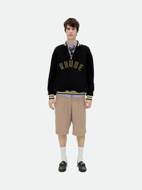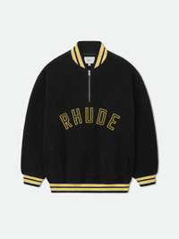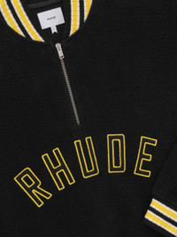 Lightweight quarter-zip jacket showcases embroidered RHUDE lettering on the front. It comes with a quarter zipper closure and features pull over styling, ribbed collar, waist, and cuffs for added style and comfort. 100% COTTON