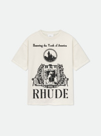 Custom-fit vintage wash cotton short sleeve tee-shirt with Rhude "Youth of America" graphics printed at front, with a clean back. 100% COTTON