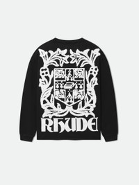 Premium long sleeve tee crafted from soft, lightweight fabric. Features a comfortable and relaxed custom Rhude fit. Ribbed neck and sleeves, with Rhude Crest graphics on front and back in custom puff print. AW24 Runway Trunkshow - Delivers in AW24 Season 100% COTTON DRY CLEAN ONLY WE RECOMMEND TAKING YOUR STANDARD SIZE