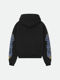 Long sleeve French Terry hoodie with Rhude Racing graphic designs printed on the front and sleeves, with a clean back. Featuring a kangaroo front pocket and dropped shoulders. Each piece is unique and print distressing my vary per style. 100% COTTON