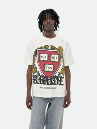 Custom-fit vintage wash cotton short sleeve tee-shirt with Rhude Veritas crest graphics printed at front, with a clean back. 100% COTTON WE RECOMMEND TAKING YOUR STANDARD SIZE
