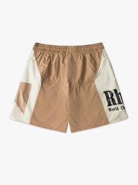 Premium panel short with logos placed on each side panel, along with two side pockets. Extended drawstrings in our signature mustard tone.