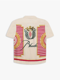 CLASSIC BUTTON UP SHIRT CRAFTED FROM PREMIUM QUALITY SILK. FEATURING A FLAT HEM, CUSTOM BUTTON CLOSURES AT FRONT, CASINO DESIGN THROUGHOUT, AND RHUDE SCRIPT LOGO ON THE BACK. CARE 100% SILK DRY CLEAN ONLY. SIZING STANDARD FIT - WE RECOMMEND TAKING YOUR STANDARD SIZE.