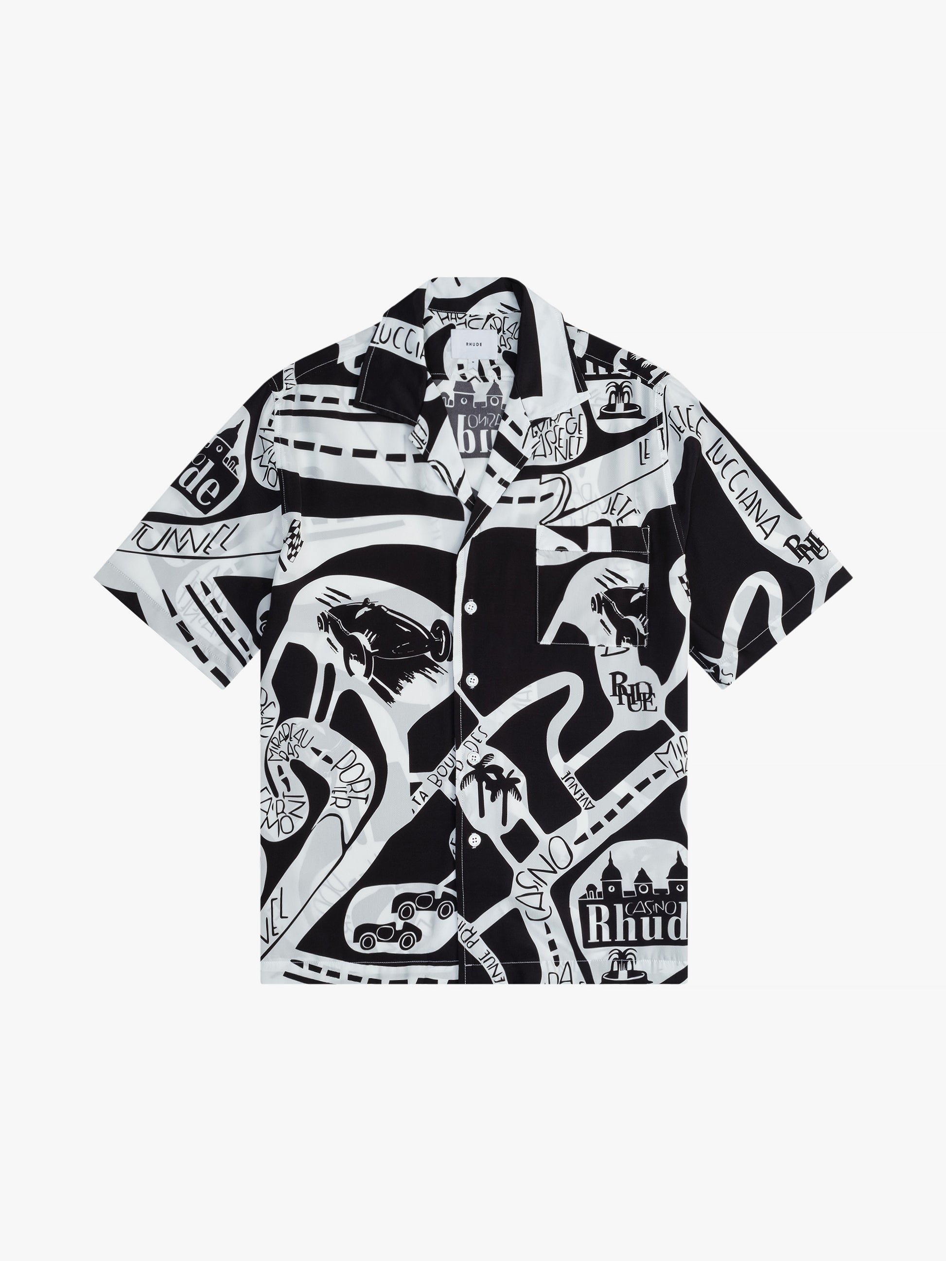 Classic button up shirt crafted from premium quality silk. Featuring a flat hem, custom button closures at front, and RHUDE strada doodle inspired designs all over. CARE INSTRUCTIONS 100% SILK Dry clean only. SIZING Standard fit - We recommend taking your standard size.