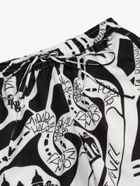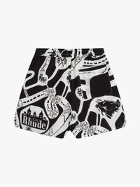 Premium silk shorts f eaturing Rhude strada doodle all over design , an elasticated waistband, twin side pockets, and a singular back pocket . Exaggerated front drawstrings in our signature mustard tone. CARE INSTRUCTIONS 100% SILK Dry clean only. Standard fit. We recommend taking your standard size.