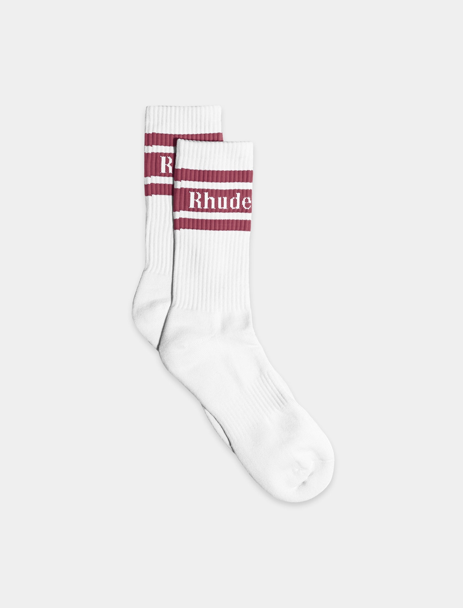 Ribbed crew socks. Jacquard striped logo at the hem. Calf-length. - Cotton and elastane SKU: RHSS23SO12070562-WHTXPNK