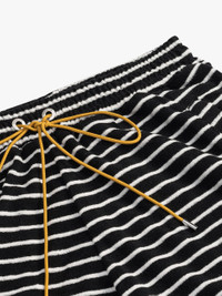 Premium stripe towel shorts f eaturing an elasticated waistband for a comfortable fit. Features twin side pockets, and a singular back pocket for added functionality. Exaggerated front drawstrings in our signature Mustard tone. SIZING DRY CLEAN ONLY WE RECOMMEND TAKING YOUR STANDARD SIZE