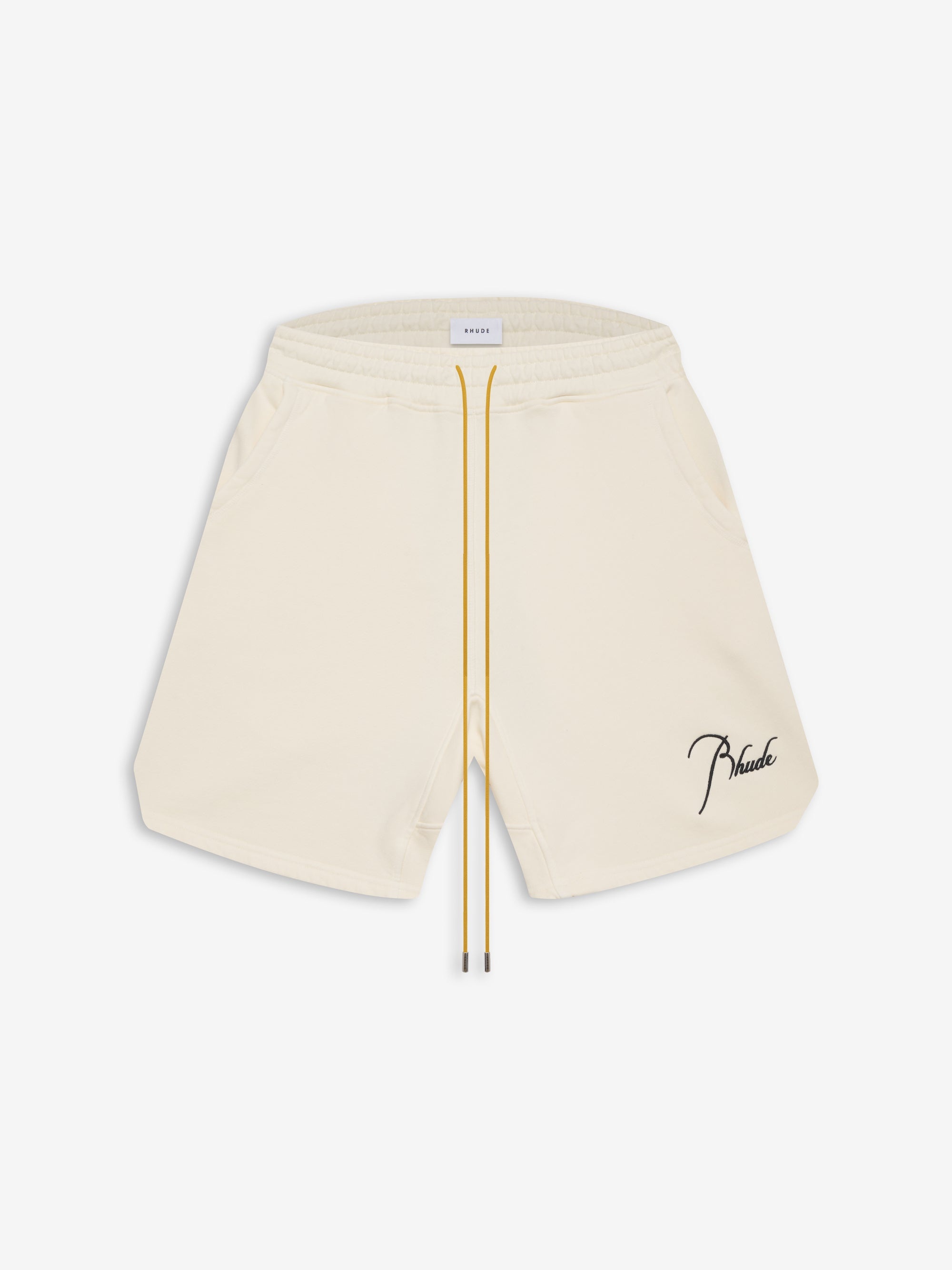 HEAVYWEIGHT SWEAT SHORT WITH SIGNATURE RHUDE LOGO EMBROIDERED ON THEFRONT, FEATURING EXAGGERATED DRAWSTRINGS IN OUR SIGNATURE MUSTARD TONE. CARE 100% COTTON DRY CLEAN ONLY. STANDARD FIT. WE RECOMMEND TAKING YOUR STANDARD SIZE.