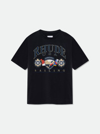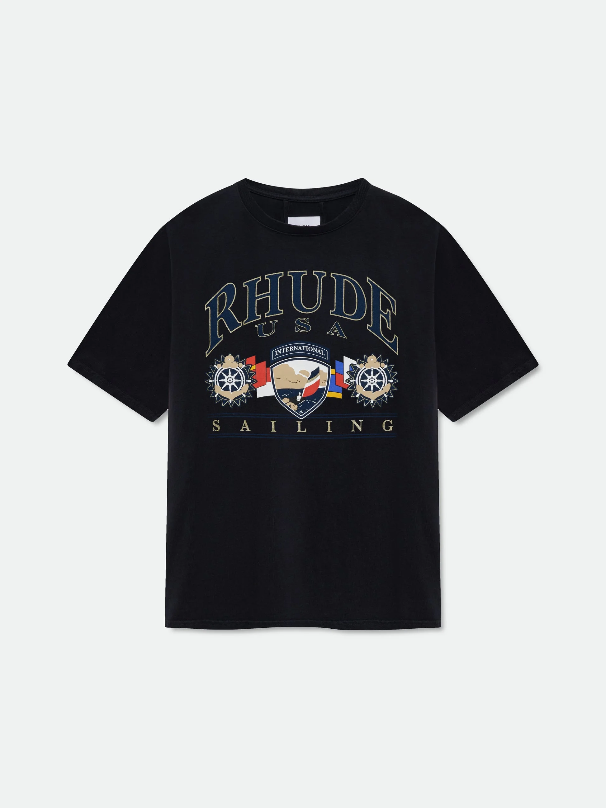 Custom-fit vintage wash cotton short sleeve tee-shirt with Rhude "USA SAILING " graphics printed at front, with a clean back. 100% COTTON
