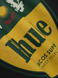 Long sleeve French Terry hoodie with Rhude tabaco graphics printed on the front, and back. Featuring a kangaroo front pocket and dropped shoulders. Each piece is unique and print distressing my vary per style. 100% COTTON