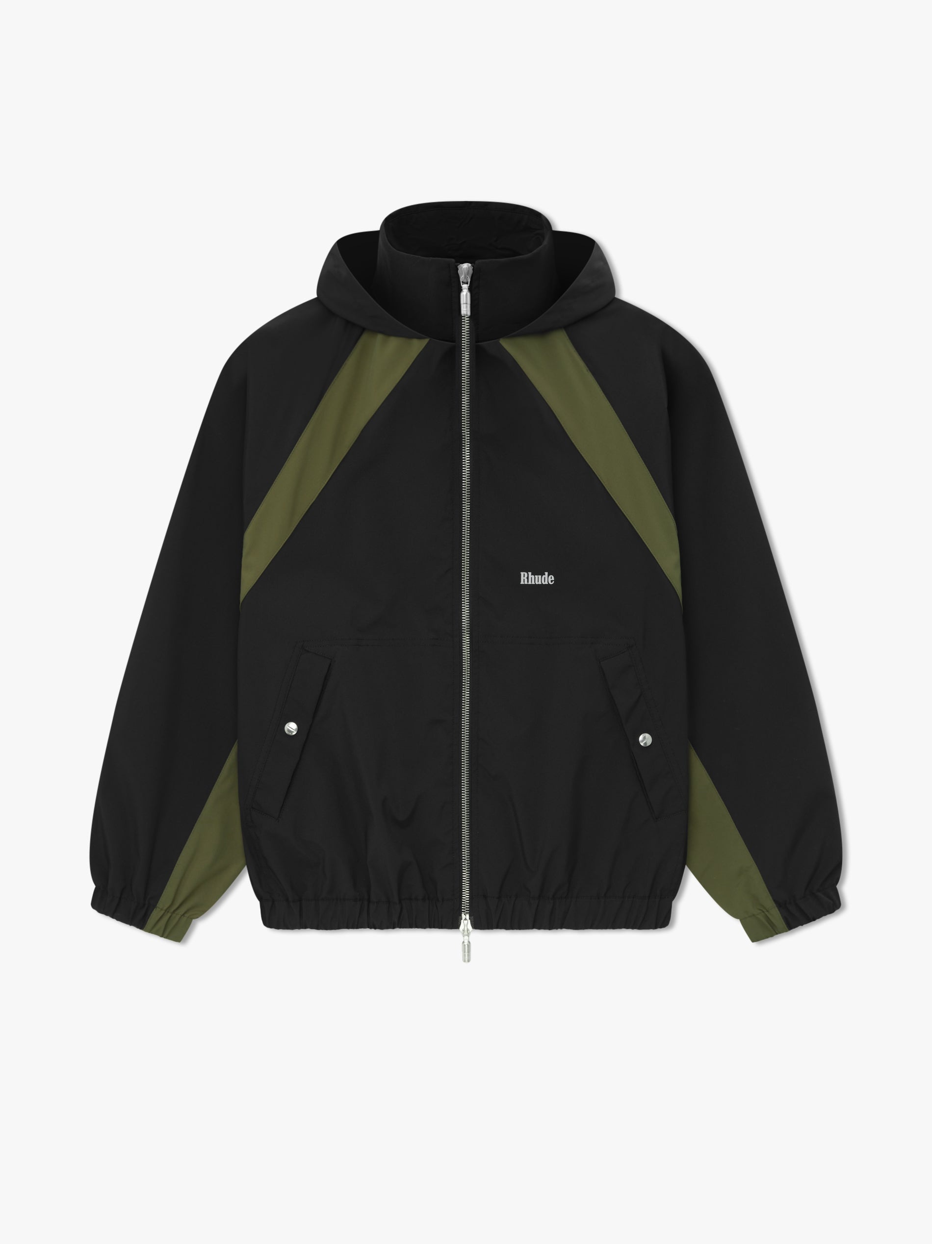 Premium flyweight poly jacket, features a dual-panel chevron construction with Custom two-way Rhude Pill zipper closure. SHELL: 100% POLYESTER LINING: 100%POLYESTER Standard fit. We recommend taking your standard size.