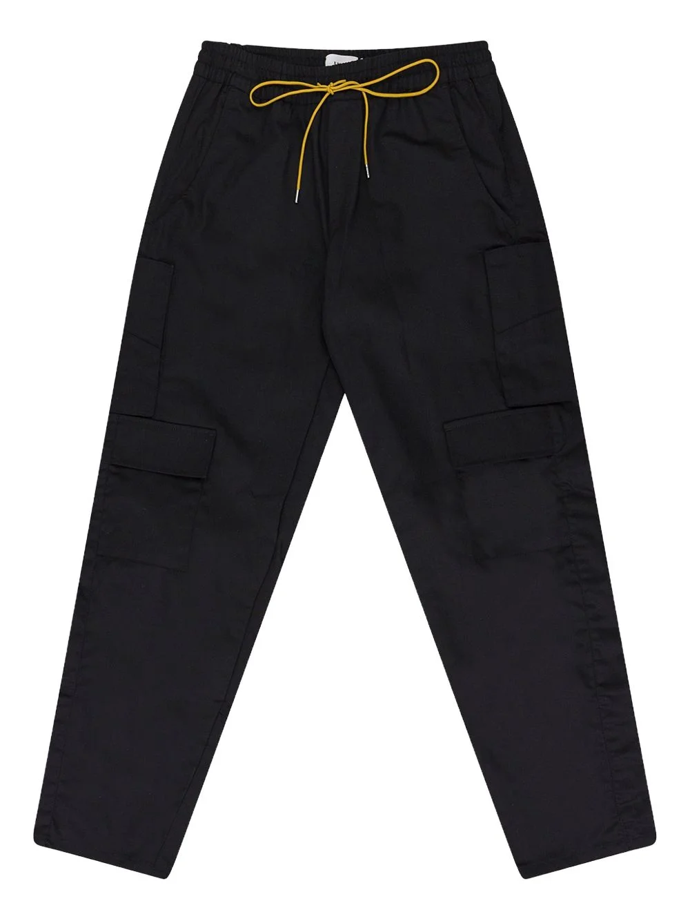 twill-texture cargo trousers Highlights - Black - Drawstring-fastening - Cargo-pockets - Twill-texture - Back-pockets Imported Composition Fabric 100% Washing instructions Read Manufacturer Guidelines