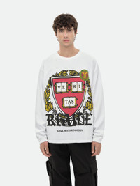 Premium long sleeve tee crafted from soft, lightweight fabric. Features a comfortable and relaxed custom Rhude fit. Ribbed neck and sleeves, with Rhude Crest graphics on front, with a clean back. 100% COTTON DRY CLEAN ONLY WE RECOMMEND TAKING YOUR STANDARD SIZE