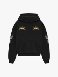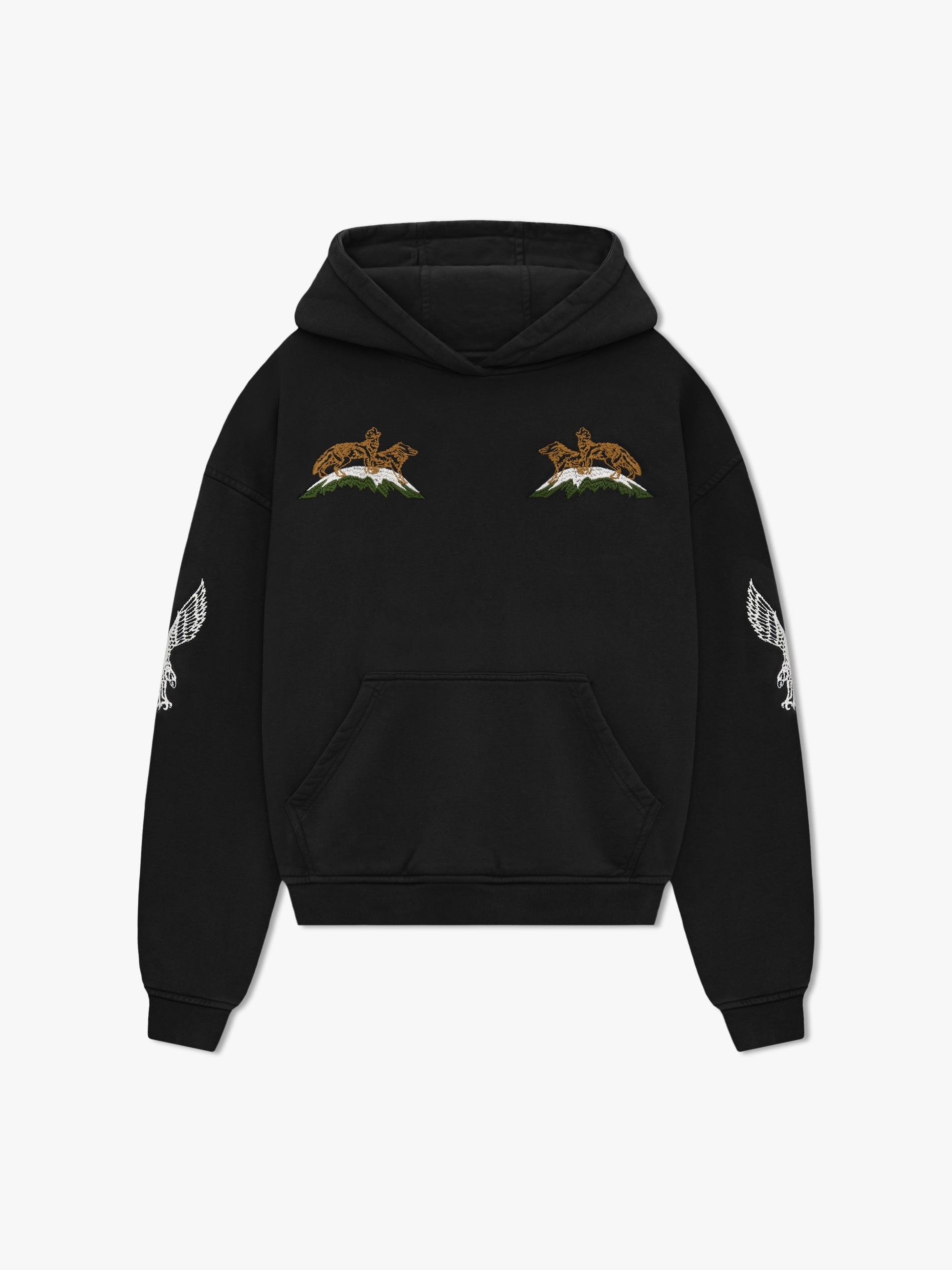 Heavyweight hoodie with Rhude Woodland Hills graphics printed on the front, arms, and back. Featuring a kangaroo front pocket and dropped shoulders. Each piece is unique and print distressing my vary per style. 100% COTTON STANDARD FIT WE RECOMMEND TAKING YOUR STANDARD SIZE