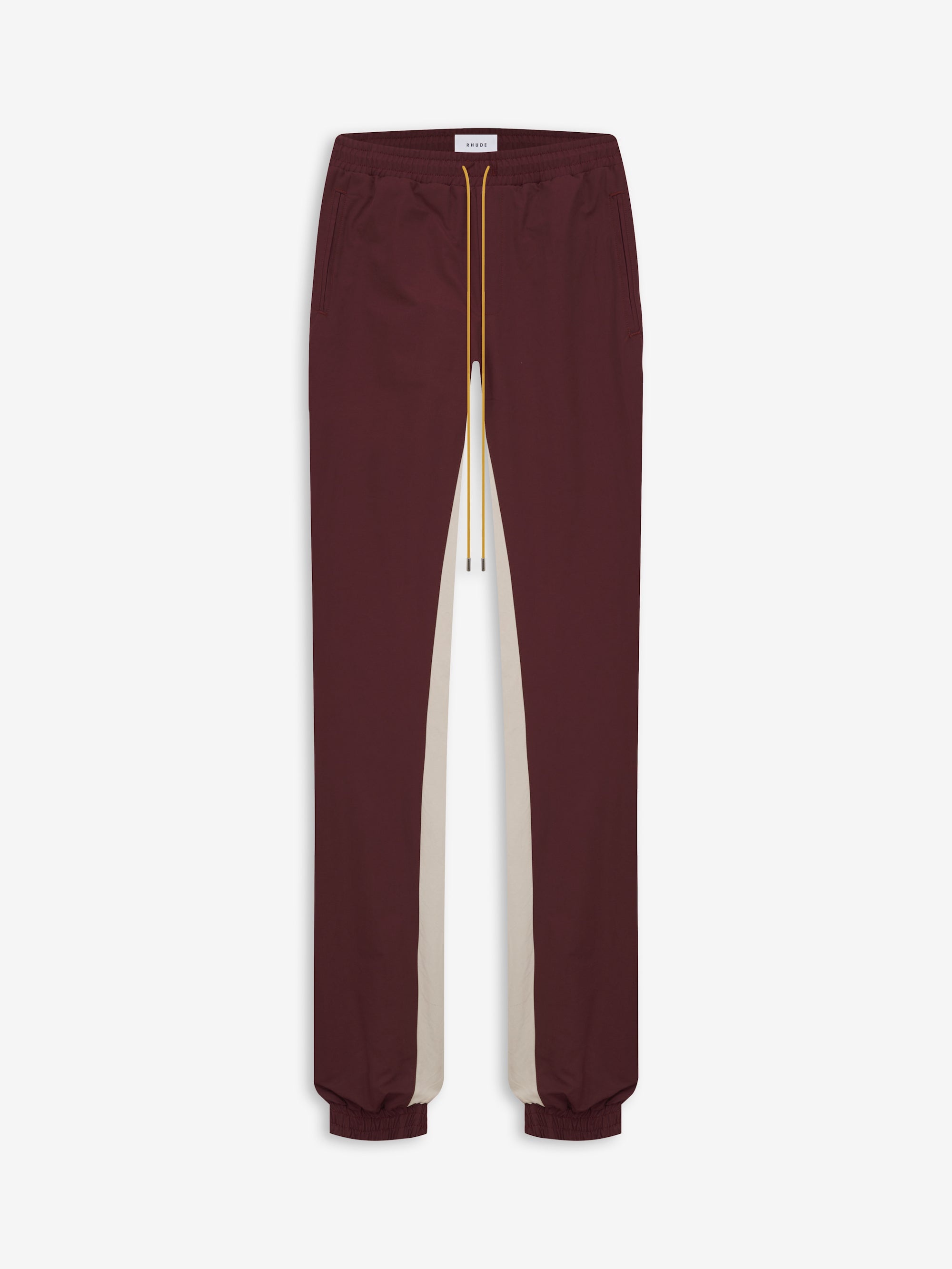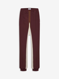 PREMIUM QUALITY NYLON/COTTONBLENDTRACK PANTS WITH CONTRASTING INNER-LEG PANELING. ELASTICATED ANKLE CUFF, FEATURING EXAGGERATED DRAWSTRINGS IN OUR SIGNATURE MUSTARD TONE. CARE 60% NYLON 40% COTTON DRY CLEAN ONLY. STANDARD FIT - WE RECOMMEND TAKING YOUR STANDARD SIZE.