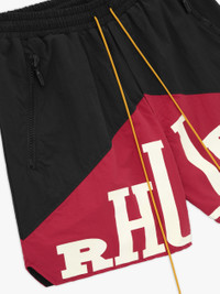 Premium washed cupro/cotton blend short with white logo print across front legs. Twin zipper pockets with matching tonal Rhude Pill hardware. Extended drawstrings in our signature mustard tone. 60% CUPRO / 40% COTTON Dry clean only. Standard fit. We recommend taking your standard size.