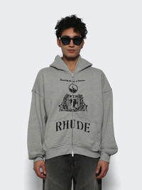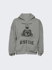 Details - Heather grey zip-up hoodie - Black graphic print and logo on front - Material: 90% Cotton, 10% Polyester Size Information: Vendor Color Code: Brand Style: RHFW25HO02829 Designer/Brand: RHUDE