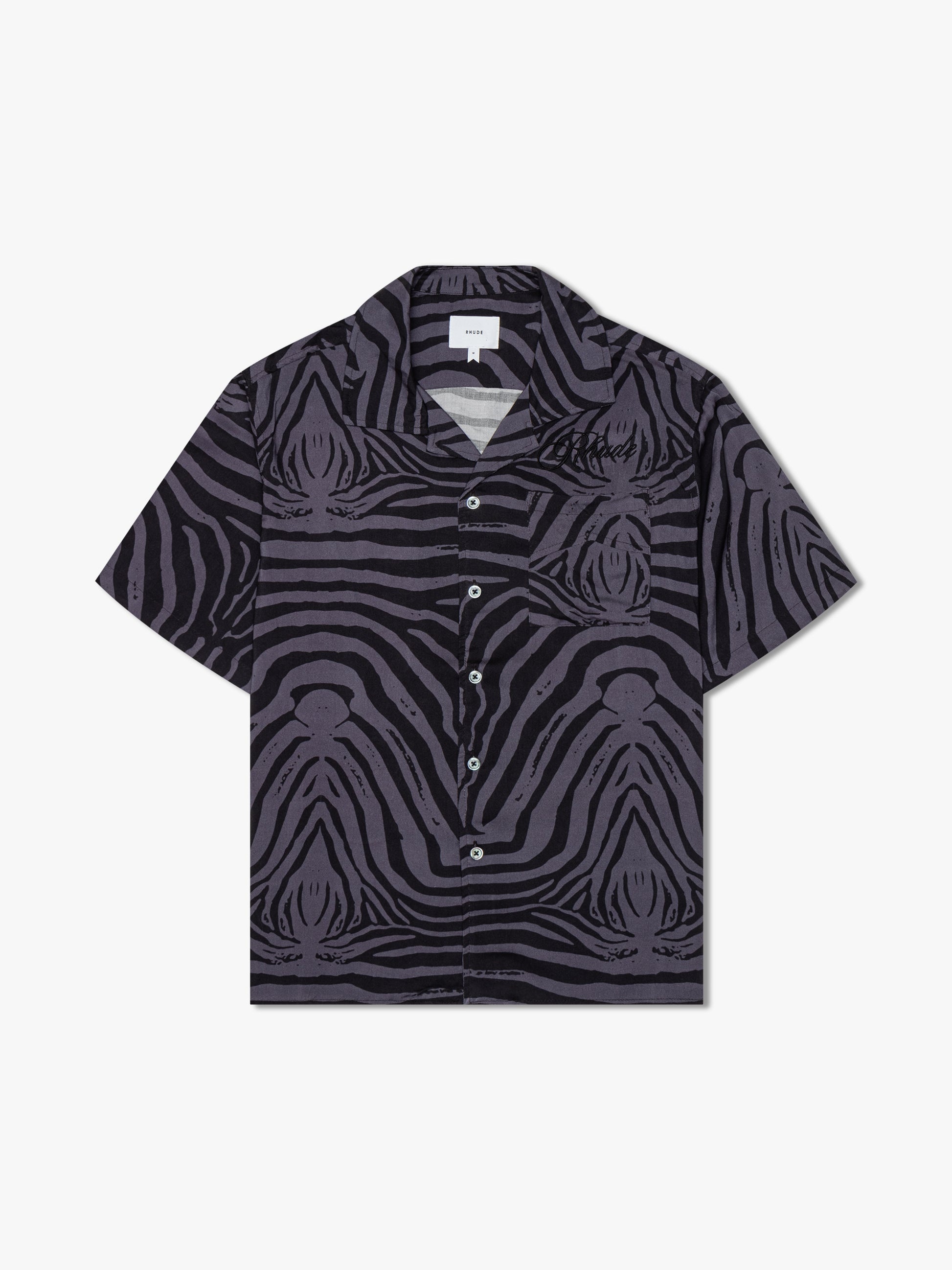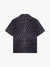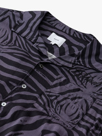 Classic button up shirt crafted from soft and breathable rayon, this shirt offers a comfortable and relaxed fit. Featuring a flat hem, custom button closures at front, and zebra patterns throughout an all-over design. CARE INSTRUCTIONS 100% RAYON Dry clean only. SIZING Standard fit - We recommend taking your standard size.