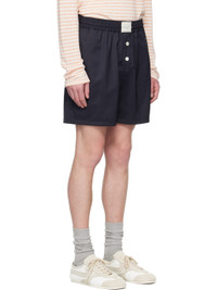 Polyester- and wool-blend twill shorts. · Concealed drawstring at elasticized waistband · Logo patch at waistband · Four-pocket styling · Exposed button fly Supplier color: Dark gray 70% polyester, 30% wool. Made in Japan 251223M193000