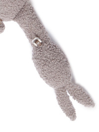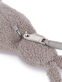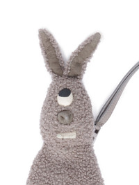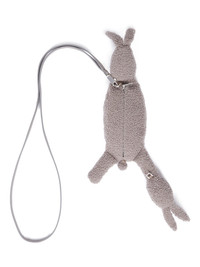 RICK OWENS HUN SIAMESE BUNNY IN DARK DUST LAMB SHEARLING THIS SIAMESE BUNNY FEATURES TWO HEADS WITH ONE EYE, ONE NOSE, TWO TEETH, LONG EARS, ONE LEG AND NO ARMS, AND ONE SECRET POCKET ON THE BACK THAT CAN BE USED AS A SMALL POUCH - COLOR: DARKDUST GREY - MATERIAL: 100% LAMB SHEARLING REAL FUR - SHOULDER STRAP 100% CALF LEATHER