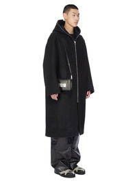 RICK OWENS FW25 CONCORDIANS GRIFFIN IN BLACK GLOSSY BUTTER CALF LEATHER THIS GRIFFIN IS A SMALL RECTANGULAR BAG WITH A FRONT FLAP WITH A PALLADIUM INDENTED EASY-GRIP BEVEL AND MAGNETIC CLOSURE. IT HAS ONE PONTICELLO D-LOOP ON FRONT, AN INNER POCKET WITH 9 CARD SLOTS AND A SECOND INNER ZIPPERED POCKET. IT FEATURES A LONG THIN LEATHER STRAP WITH A PALLADIUM TONE BRASS HOOK WHICH TIES ON ONE SIDE, OR CAN BE DETACHED TO CREATE A CLUTCH THIS LIGHTWEIGHT GLOSSY BUTTER FULL CALF LEATHER IS FINISHED USING ANALINE AND NATURAL OILS IN ORDER TO ACHIEVE ITS BUTTERY HANDFEEL IT IS FINISHED BY HOT PRESS IN ORDER TO ACHIEVE THE SHINY SURFACE COLOR: BLACK MATERIAL: 100% CALF LEATHER IT MEASURES 21,5CM X 13CM X 4,5CM
