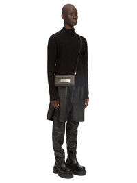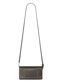 RICK OWENS FW24 PORTERVILLE GRIFFIN IN BLACK SOFT GRAIN COW LEATHER THIS GRIFFIN IS A SMALL RECTANGULAR BAG WITH A FRONT FLAP WITH A PALLADIUM INDENTED EASY-GRIP BEVEL AND MAGNETIC CLOSURE. IT HAS ONE PONTICELLO D-LOOP ON FRONT, AN INNER POCKET WITH 9 CARD SLOTS AND A SECOND INNER ZIPPERED POCKET. IT FEATURES A LONG THIN LEATHER STRAP WITH A PALLADIUM TONE BRASS HOOK WHICH TIES ON ONE SIDE, OR CAN BE DETACHED TO CREATE A CLUTCH THIS MEDIUMWEIGHT COW LEATHER HAS A SUBTLE GRAIN TEXTURE AND NATURAL HANDFEEL. TANNED IN THE VENETO AREA OF ITALY, THIS LEATHER IS TUMBLED MULTIPLE TIMES IN A LARGE DRUM IN ORDER TO BRING OUT THE NATURAL GRAIN TEXTURE OF THE SKIN. THE LEATHER IS FINISHED WITH ANILINE AND AIR-DRIED IN ORDER TO ACHIEVE THE NATURAL AND WAXY HANDFEEL. THIS TANNERY IS LWG CERTIFIED WITH A SILVER RATING. - COLOR: BLACK - MATERIAL: 100% CALF LEATHER - MEASUREMENT: WIDTH 21,5CM / HEIGHT 13CM / DEPTH 4,5CM