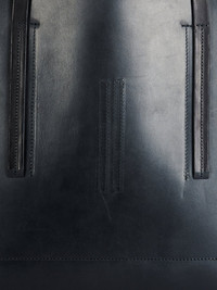 RICK OWENS SS24 LIDO SHOPPER IN BLACK GROPPONE COW LEATHER THIS SHOPPER IS A HORIZONTAL RECTANGULAR TOTE BAG WITH TWO LONG HANDLES INTENDED FOR A SHOULDER CARRY AND TWO SHORT HAND CARRY HANDLES. IT HAS AN INNER ZIPPERED POCKET, A FLAT POCKET WITH SIGNATURE U-SHAPED STITCHING DETAIL VISIBLE ON THE FRONT.IT IS EMBOSSED WITH THE RICK OWENS LOGO THIS HEAVYWEIGHT COW LEATHER IS VEG TANNED AND FINISHED USING NATURAL WAXES. BECAUSE THIS SKIN IS NAKED, NOT FINISHED USING ANY PIGMENTS COVERING THE SKIN, NATURAL MARKINGS AND SHADINGS ARE VISIBLE WHICH MAKES EACH SKIN AND PRODUCT UNIQUE. VEG TANNING MEANS ONLY VEGETAL AND NATURAL TANNINS WERE USED IN THE PROCESS OF TANNING AND PRESERVING THIS LEATHER. THIS TANNERY IS LWG CERTIFIED WITH A GOLD RATING. - COLOR: BLACK - MATERIAL: 100% COW LEATHER - 100% BULL LEATHER - LENGTH 51CM / HEIGHT 33CM / SIDE WIDTH 15CM