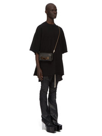 RICK OWENS FW23 LUXOR RUNWAY PILLOW GRIFFIN IN BLACK BUTTER CALF LEATHER THIS PILLOW GRIFFIN IS A SMALL RECTANGULAR, SOFT PADDED BAG WITH A FRONT FLAP WITH A PALLADIUM INDENTED EASY-GRIP BEVEL AND MAGNETIC CLOSURE. IT HAS ONE PONTICELLO D-LOOP ON FRONT, AN INNER POCKET WITH 9 CARD SLOTS, AND A SECOND INNER ZIPPERED POCKET THIS VERSION COMES WITH OUR DETACHABLE CROSSBODY SNAKE CHAIN, A LONG STRAP WITH A SNAP HOOK ON EITHER END MADE FROM TUBULAR SNAKE CHAIN. IT CAN BE DETACHED TO CREATE A CLUTCH AND FEATURES A SMOKEY QUARTZ ATOP THE BEVELED MAGNETIC CLOSURE THIS LIGHTWEIGHT FULL GRAIN CALF LEATHER IS FINISHED ONLY USING ANILINE AND NATURAL OILS IN ORDER TO ACHIEVE ITS BUTTERY AND SEMI SHINY SURFACE. - COLOR: BLACK - MATERIAL: 100% CALF LEATHER - PADDING 100% POLYESTER - SHOULDER STRAP 100% BRASS - DETAIL 100% SMOKY QUARTZ - MEASUREMENTS:LENGTH 24CM / HEIGHT 13CM / SIDE WIDTH 7CM