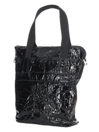 RICK OWENS SS24 LIDO SMALL MESSENGER IN BLACK SHUTTLE NEOPRENE THIS SMALL MESSENGER IS A VERTICAL RECTANGULAR TOTE BAG WITH ONE ROUNDED CORNER AND A ZIPPER CLOSURE RUNNING ACROSS THE TOP. IT FEATURES A HORIZONTAL SEAM LINE WITH TWO LONG HANDLES, INTENDED FOR SHOULDER CARRYING AND FEATURES SIGNATURE TOPSTITCHING. IT HAS A DETACHABLE, ADJUSTABLE, WEBBING STRAP MADE IN THICK COTTON WEBBING. IT FEATURES A BIG, PALLADIUM TONE BRASS, SNAP HOOK ON EITHER END. THIS MULTI-LAYER MATERIAL IS A NEOPRENE BASE WITH A MALLEABLE METAL FOIL INNER LAYER AND A COLORED COATING. THE NATURAL ASPECTS OF THIS MATERIAL MEANS THE COATING HAS PEELED OFF IN CERTAIN AREAS, EXPOSING THE UNDERLAYING METAL LAYER AND WILL CONTINUE TO DO SO WITH WEAR AND ABRASION. THIS IS AN INHERENT CHARACTERISTIC OF THIS TYPE OF TREATMENT AND IS A DESIRED A VISUAL ASPECT WHICH ADDS TO THE UNIQUENESS OF EACH PIECE AND SHOULD NOT BE CONSIDERED A DEFECT - COLOR: BLACK/BLACK - MATERIAL: 71% NYLON + 22% ALUMINIUM + 7% POLYURETHANE - RIBBONS 100% COTTON - LENGTH 44CM / HEIGHT 42CM / SIDE WIDTH 14CM
