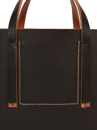 RICK OWENS FW25 CONCORDIANS MINI SHOPPER IN BLACK GROPPONE COW LEATHER THIS MINI SHOPPER IS A HORIZONTAL RECTANGULAR BAG WITH TWO SHORT CARRY HANDLES AND AN OPEN TOP. IT HAS AN INNER ZIPPERED POCKET AND A INNER FLAT POCKET WITH SIGNATURE U-SHAPED STITCHING DETAIL VISIBLE ON THE FRONT. IT IS EMBOSSED WITH THE RICK OWENS LOGO THIS HEAVYWEIGHT COW LEATHER IS VEG TANNED AND FINISHED USING NATURAL WAXES. BECAUSE THIS SKIN IS NAKED, NOT FINISHED USING ANY PIGMENTS COVERING THE SKIN, NATURAL MARKINGS AND SHADINGS ARE VISIBLE WHICH MAKES EACH SKIN AND PRODUCT UNIQUE VEG TANNING MEANS ONLY VEGETAL AND NATURAL TANNINS WERE USED IN THE PROCESS OF TANNING AND PRESERVING THIS LEATHER THIS TANNERY IS LWG CERTIFIED WITH A GOLD RATING COLOR: BLACK MATERIAL: 100% COW LEATHER 100% BULL LEATHER IT MEASURES 32,5CM X 19,5CM X 10CM