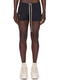 CHAMPION X RICK OWENS SS25 SWIM TRUNK IN BLACK SWIM JERSEY THEY HAVE A SMALL CHAMPION X RICK OWENS PENTAGRAM LOGO PATCH ON RIGHT THIGH. THIS MEDIUMWEIGHT CLASSIC SWIMWEAR JERSEY HAS COMFORT STRETCH, A MATTE FINISH AND IS PRODUCED ESPECIALLY FOR SWIMWEAR WITH HIGH UV AND CHLORINE RESISTANCE. THIS JERSEY IS MADE USING CERTIFIED RECYCLED POLYAMIDE WHICH ENSURES A REDUCTION IN WATER CONSUMPTION, EMISSIONS AND HAZARDOUS WASTE, LESSENING THE DEPENDENCE ON NON-RENEWABLE RESOURCES. COLOR: BLACK MATERIAL: 80% POLYAMIDE 20% ELASTANE MODEL WEARS SIZE M MODEL IS 189CM TALL
