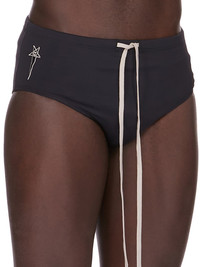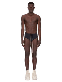 CHAMPION X RICK OWENS SS25 SWIM BRIEF IN BLACK SWIM JERSEY THEY HAVE A SMALL CHAMPION X RICK OWENS PENTAGRAM LOGO PATCH ON RIGHT THIGH THIS MEDIUMWEIGHT CLASSIC SWIMWEAR JERSEY HAS COMFORT STRETCH, A MATTE FINISH AND IS PRODUCED ESPECIALLY FOR SWIMWEAR WITH HIGH UV AND CHLORINE RESISTANCE THIS JERSEY IS MADE USING CERTIFIED RECYCLED POLYAMIDE WHICH ENSURES A REDUCTION IN WATER CONSUMPTION, EMISSIONS AND HAZARDOUS WASTE, LESSENING THE DEPENDENCE ON NON-RENEWABLE RESOURCES COLOR: BLACKMATERIAL: 80% POLYAMIDE 20% ELASTANE MODEL WEARS SIZE M MODEL IS 189CM TALL